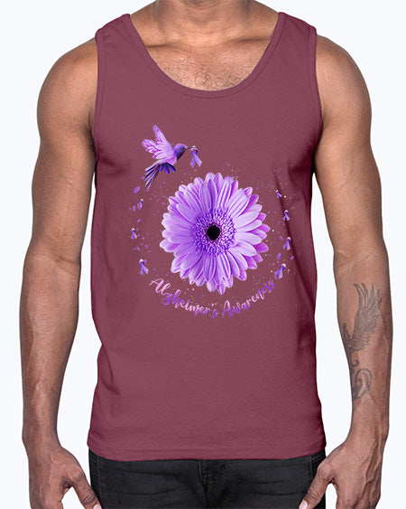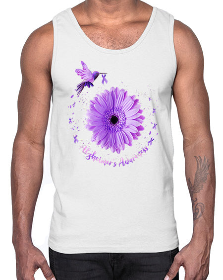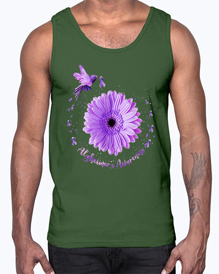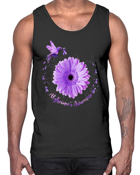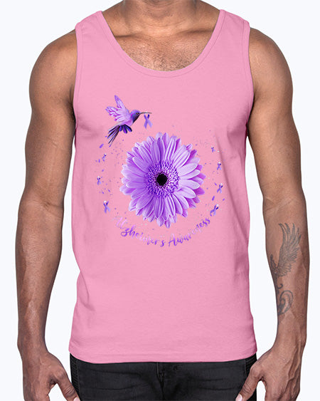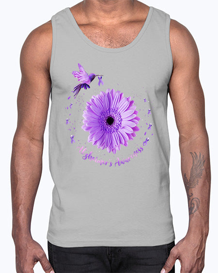 Hummingbird Sunflower Purple Ribbon Alzheimers Awareness 167#- alzheimers- Cotton Tank