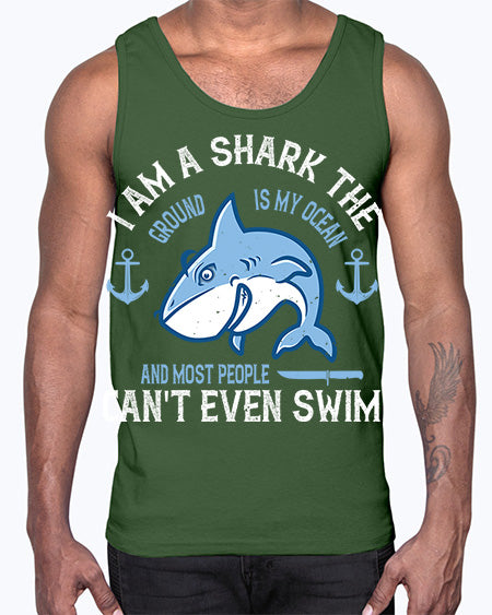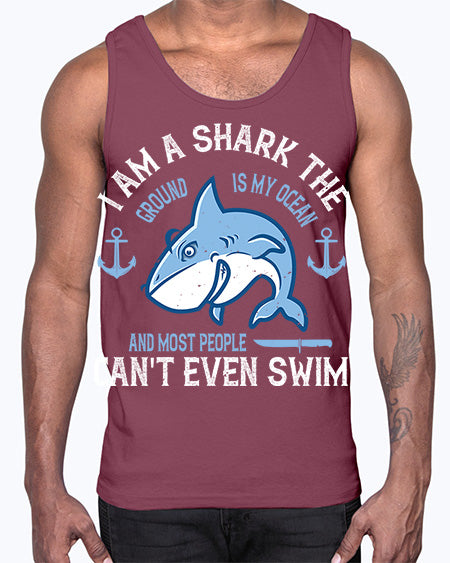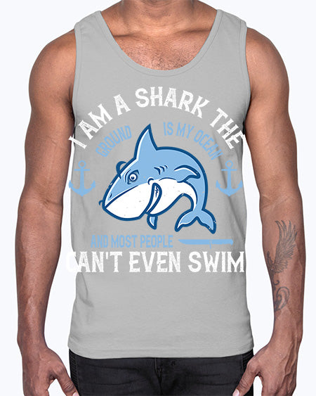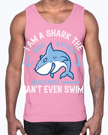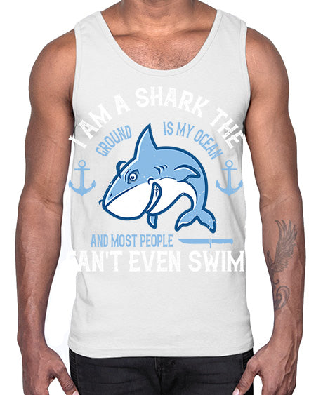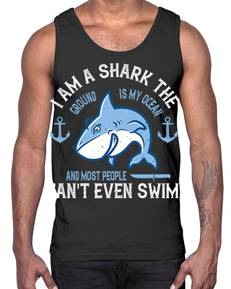 I am a shark the ground is my ocean and most people cant even swim Style 84#- shark-fish- Cotton Tank