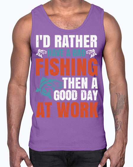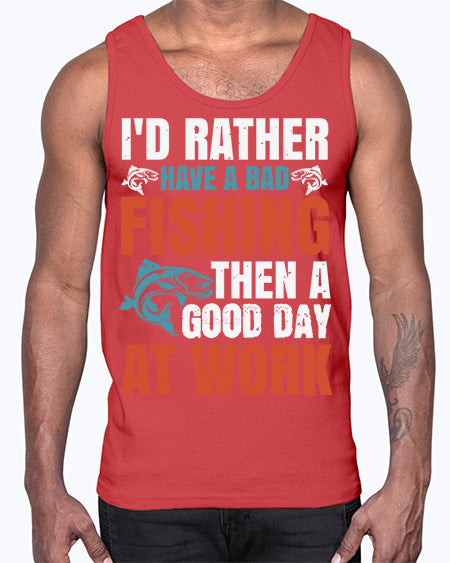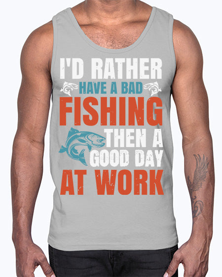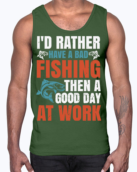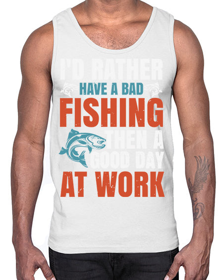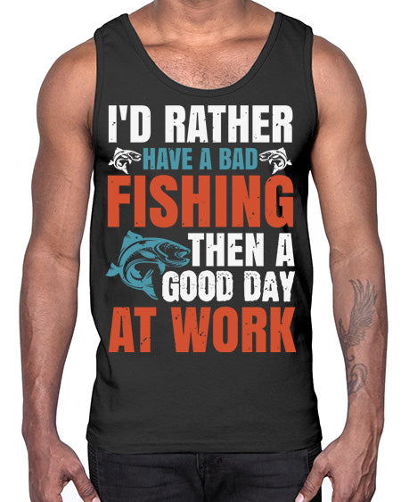 i’d rather have a bad fishing then a good day at work 9#- shark-fish- Cotton Tank