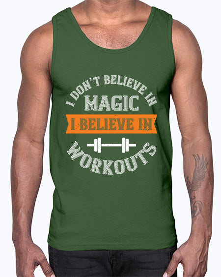 i dont belive in magic i believe in workouts 32#- gym- Cotton Tank