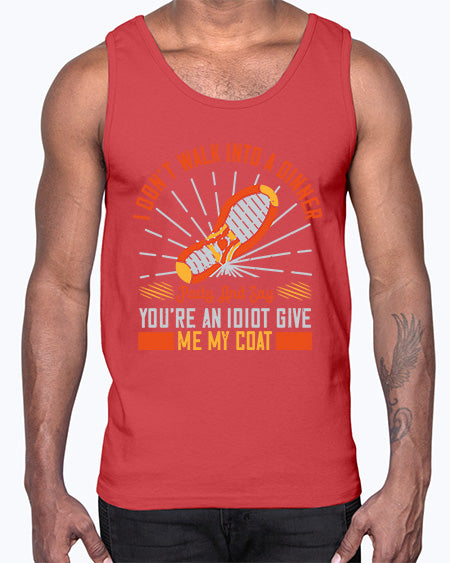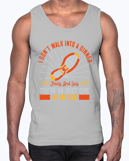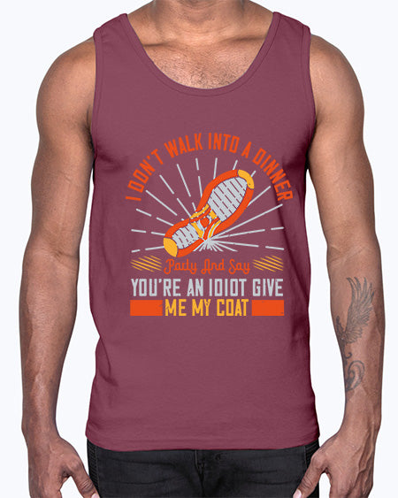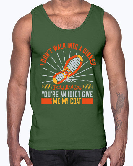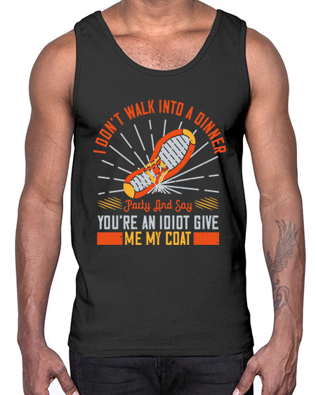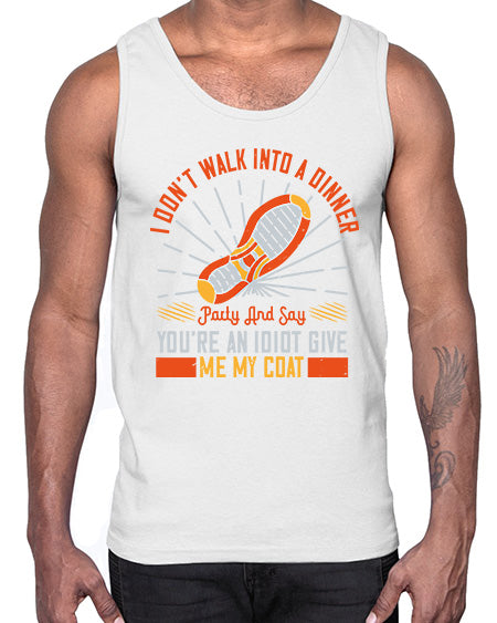 i dont walk into a dinner party and say youre an idiot give me my coat 285#- walking- Cotton Tank