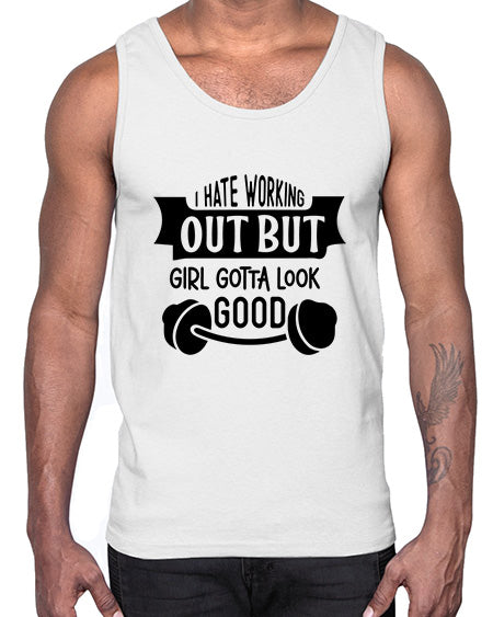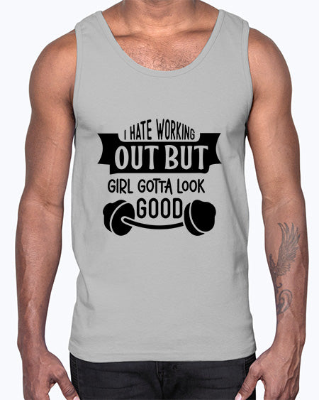 I hate working out but girl gotta look good 287#- gym- Cotton Tank