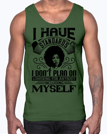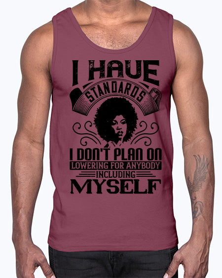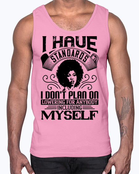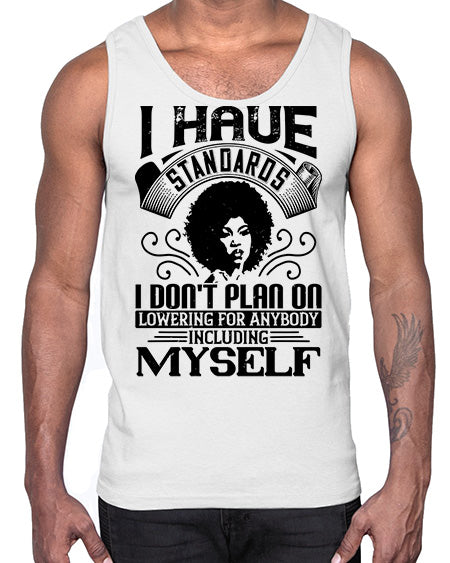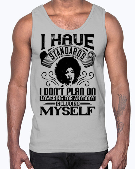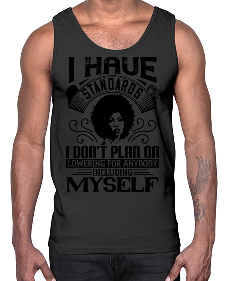 I have standards I dont plan on lowering for anybody … including myself Style 27#- black afro- Cotton Tank