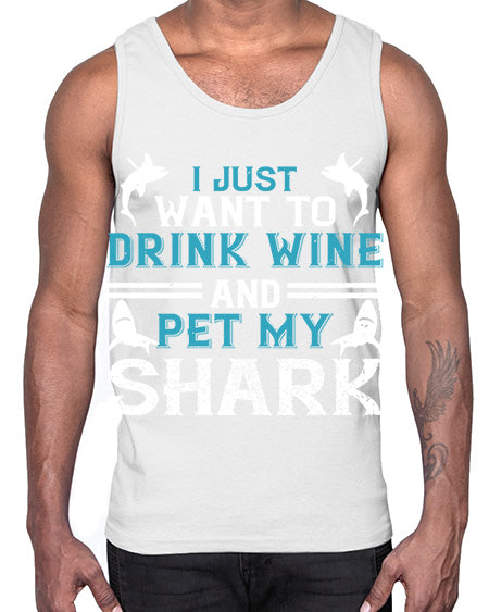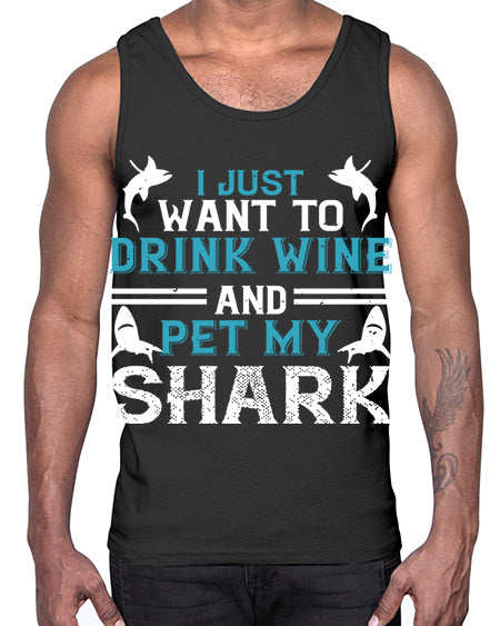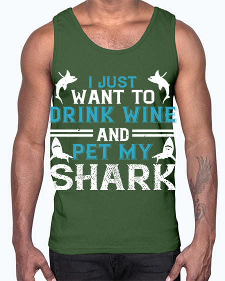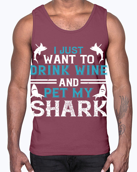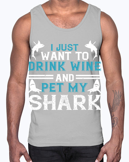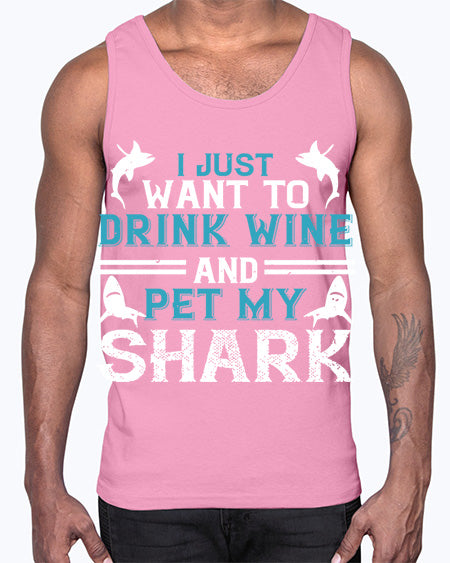 i just want to drink wine and pet my shark Style 80#- shark-fish- Cotton Tank