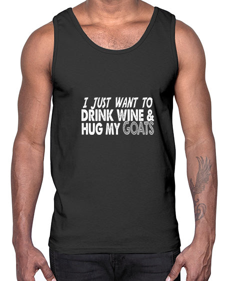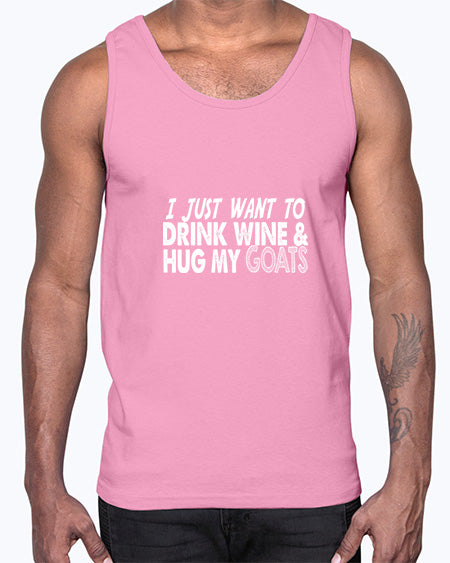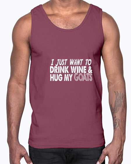 i just want to drink wine hug my goats 1116# - wine - Cotton Tank Note: There is a 2 - 4 day creation time, which may delay shipping. Details- Preshrunk jersey knit