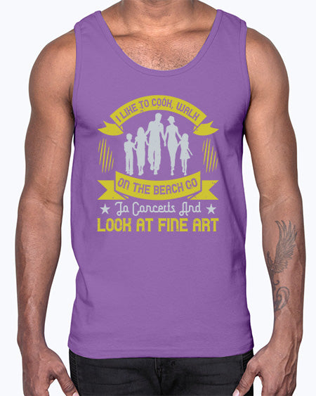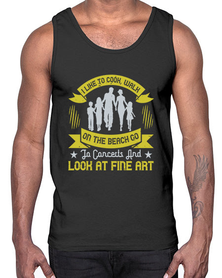 i like to cook walk on the beach go to concerts and look at fine art 292#- walking- Cotton Tank