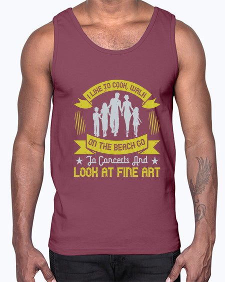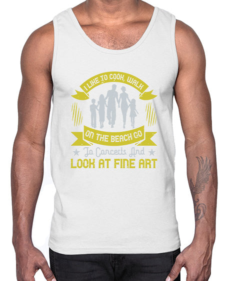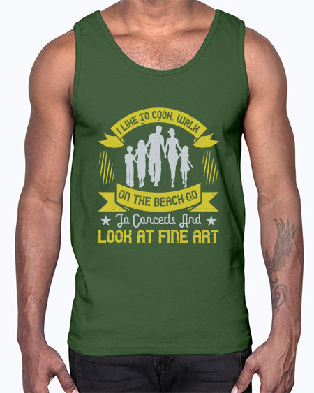 i like to cook walk on the beach go to concerts and look at fine art 292# - walking - Cotton Tank