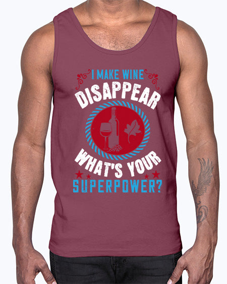 google-site-verification=jVrHOkW2AsgL_ozwUikqFQE6-Ke6U43Z8aLcUbXT5TE i make wine disappear whats your superpower 237#- wine- Cotton Tank – Tshirt Unlimited