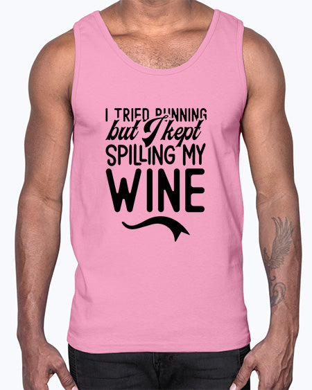 I tried running but I kept spilling my wine 304#- gym- Cotton Tank