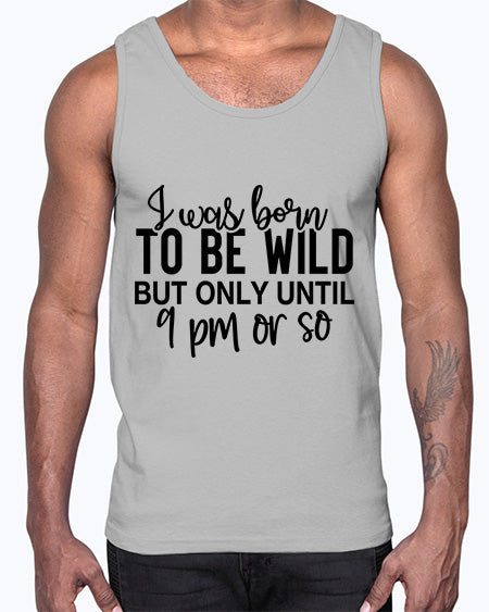 i was born to be wild but only until pm or so 607#- funny- Cotton Tank