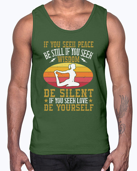 if you seek peace be still if you seek wisdom be silent if you seek love be yourself 325#- yoga- Cotton Tank