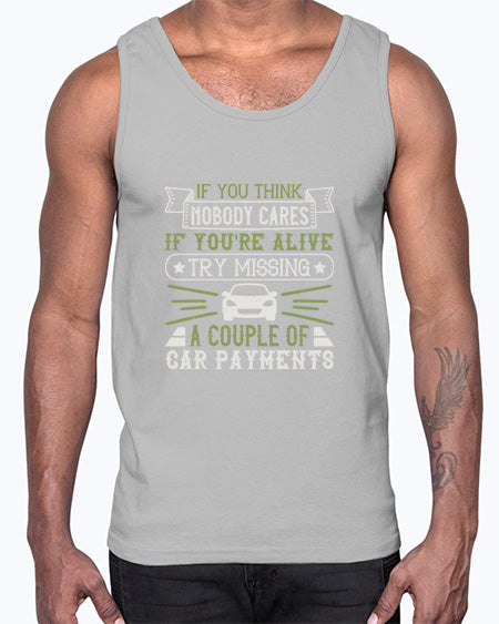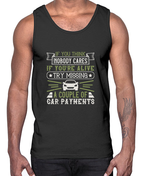 If you think nobody cares if youre alive try missing a couple of car payments 35#- car- Cotton Tank