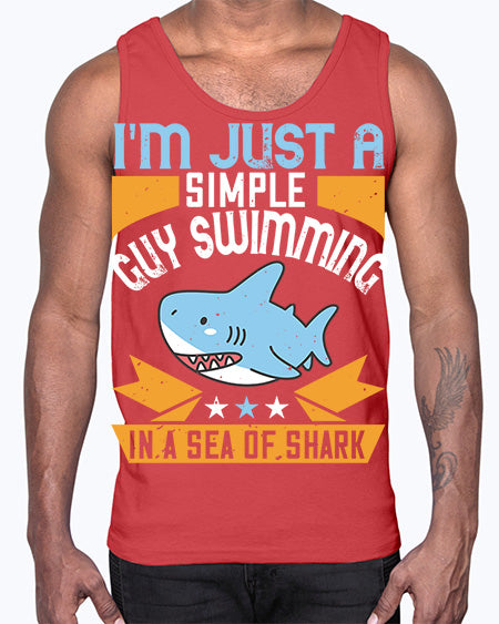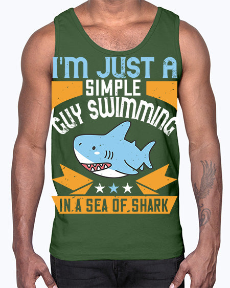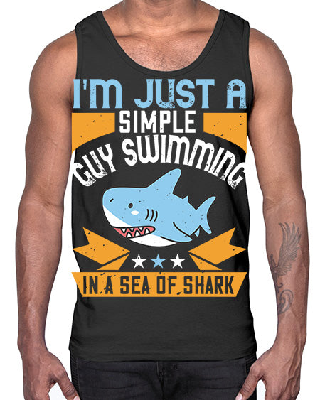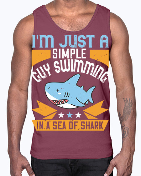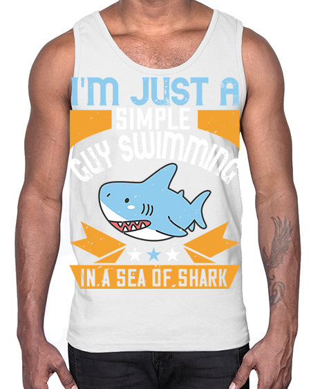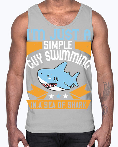 Im just a simple guy swimming in a sea of shark Style 74#- shark-fish- Cotton Tank