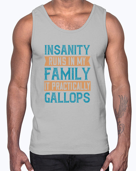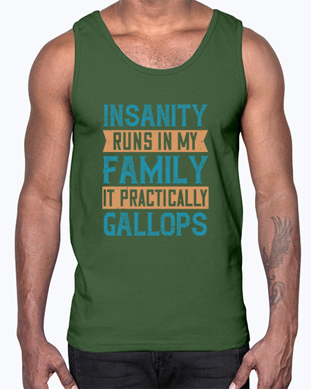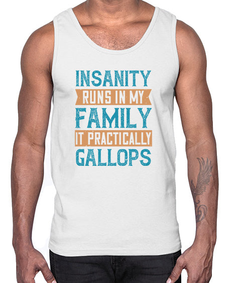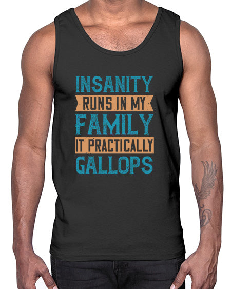 Insanity runs in my family It practically gallops 47#- funny- Cotton Tank