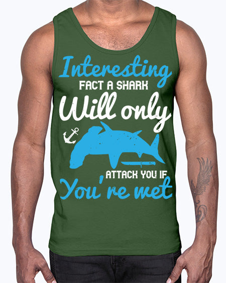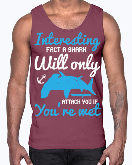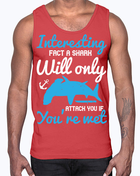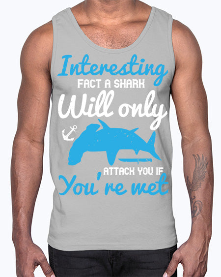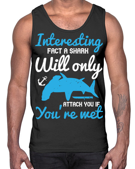 Interesting fact a shark will only attack you if you’re wet Style 62#- shark-fish- Cotton Tank