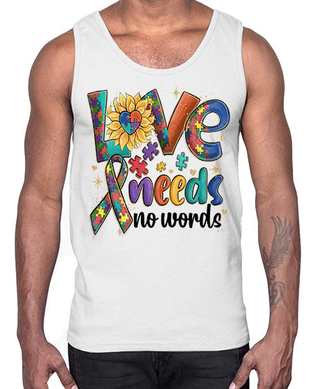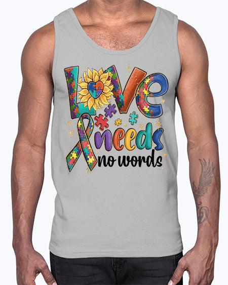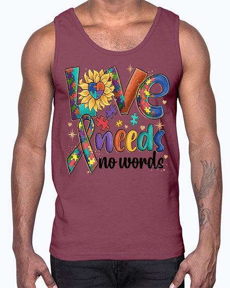 google-site-verification=jVrHOkW2AsgL_ozwUikqFQE6-Ke6U43Z8aLcUbXT5TE love needs not words autism- autism- Cotton Tank – Tshirt Unlimited