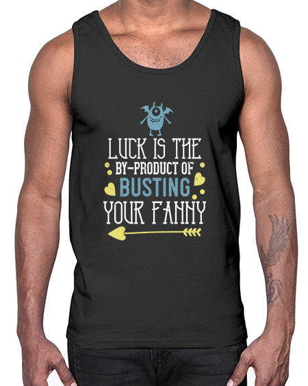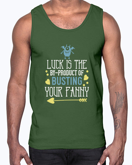 Luck is the byproduct of busting your fanny 64#- funny- Cotton Tank