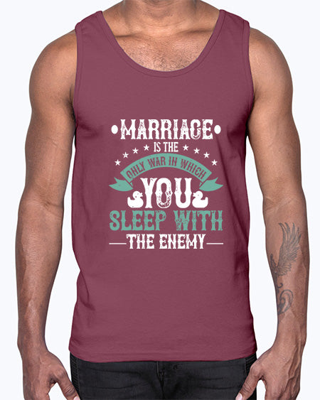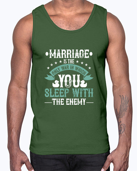 Marriage is the only war in which you sleep with the enemy 67#- funny- Cotton Tank