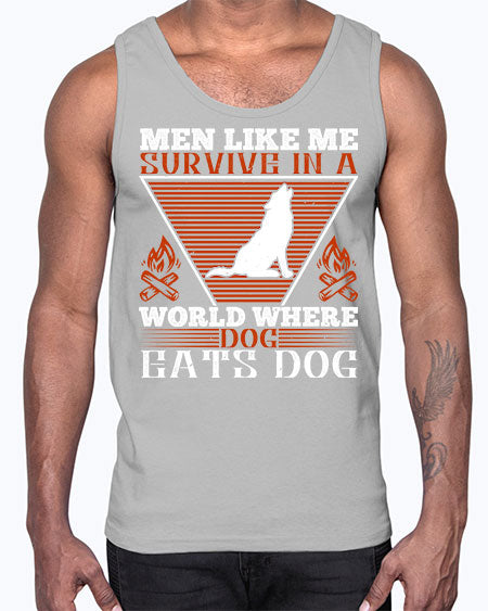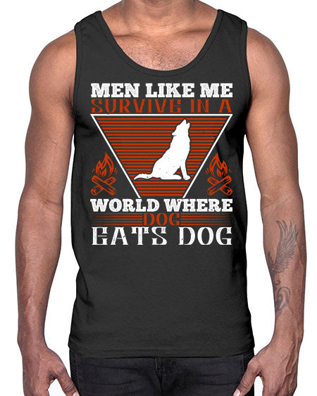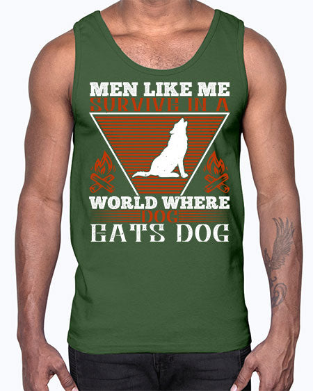 men like me survive in a world where dog eats dog 215#- dogs- Cotton Tank