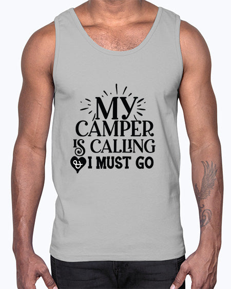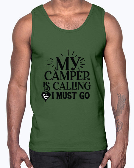 My Camper Is Calling I Must Go 69# - graphic - Cotton Tank
