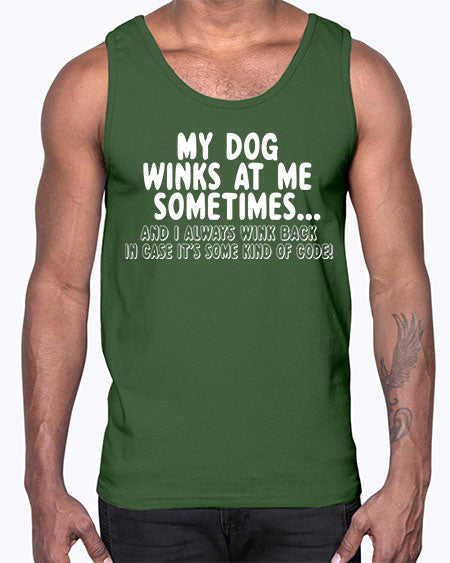 my dog winks at me sometimes and i wink back - dogs- Cotton Tank