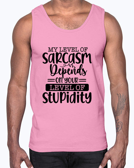 My level of sarcasm depends on your level of stupidity 949# - graphic - Cotton Tank