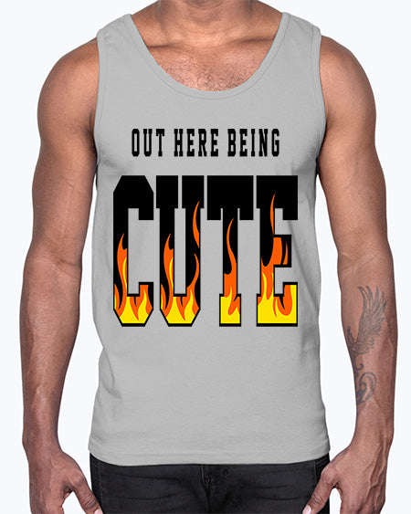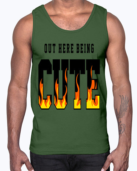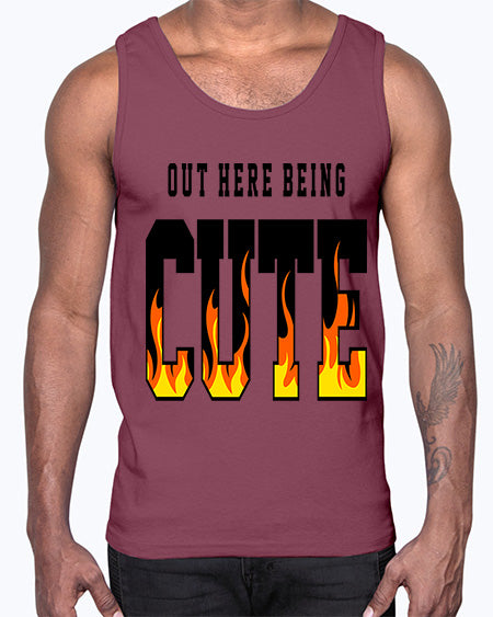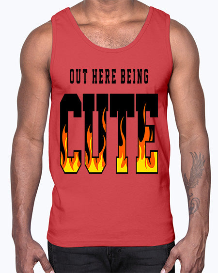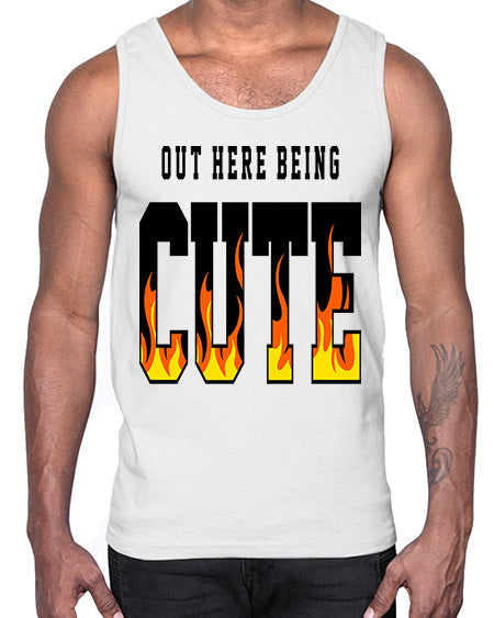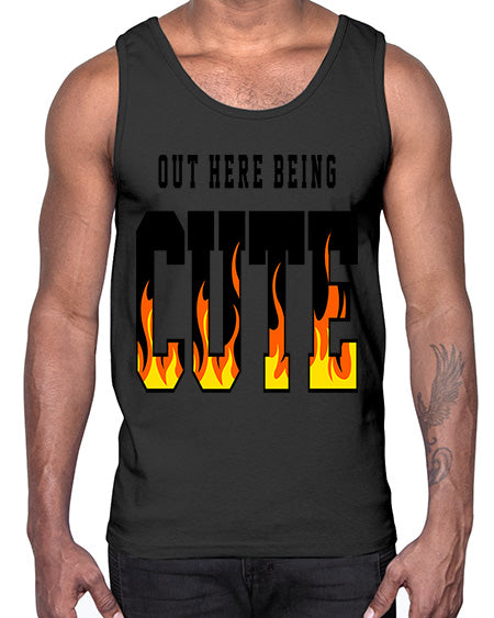 out here being cute flames 57#- black words and phrases- Cotton Tank