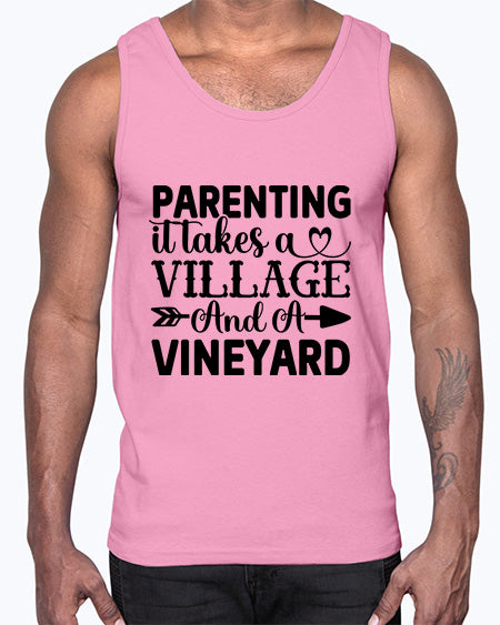 Parenting it takes a village and a vineyard 1471# - wine - Cotton Tank Note: There is a 2 - 4 day creation time, which may delay shipping. Details- Preshrunk jersey knit