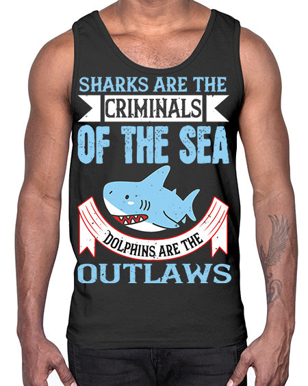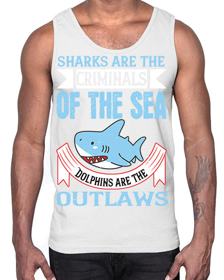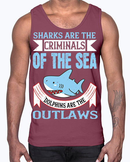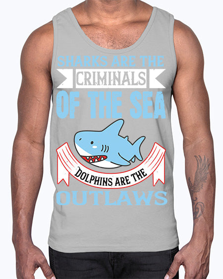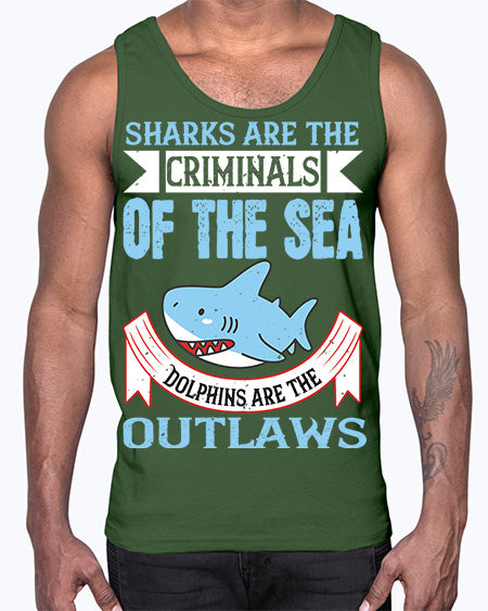 Sharks are the criminals of the sea Dolphins are the outlaws Style 32#- shark-fish- Cotton Tank