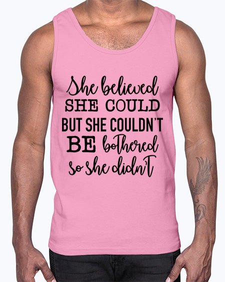 she believed she could but she couldnt be bothered so she didnt 1039#- funny- Cotton Tank