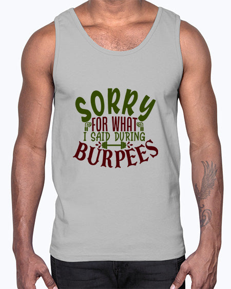 sorry for what i said during burpees 72#- gym- Cotton Tank