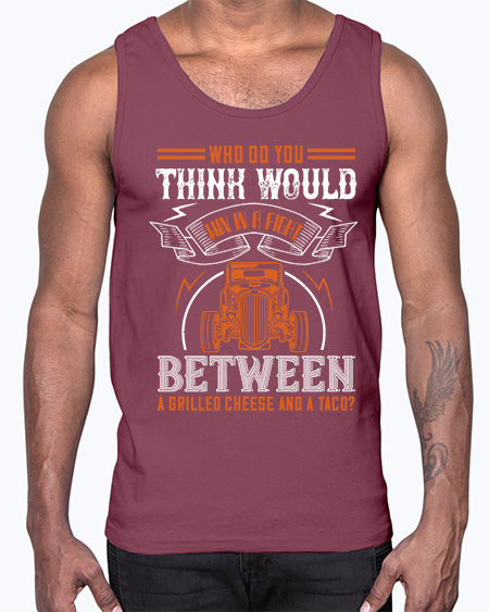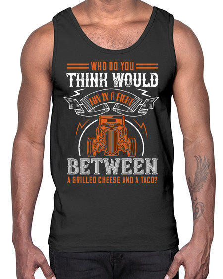 Who do you think would win in a fight between a grilled cheese and a taco 78#- hot rod- Cotton Tank
