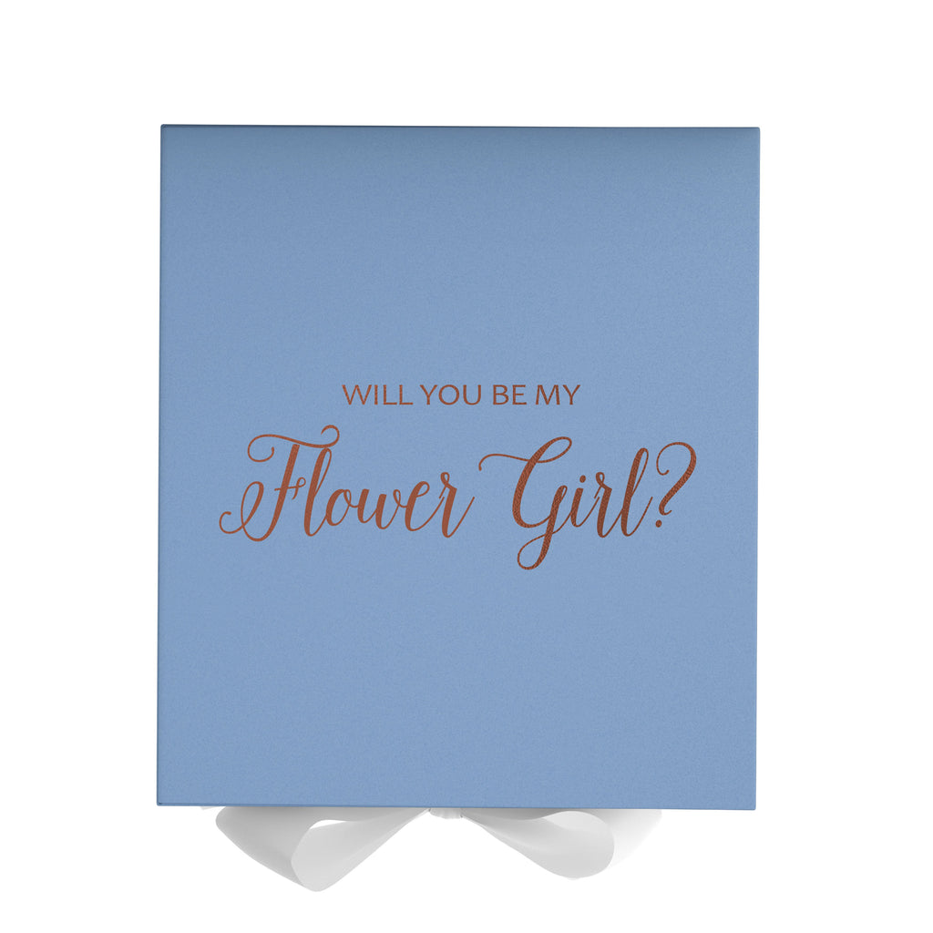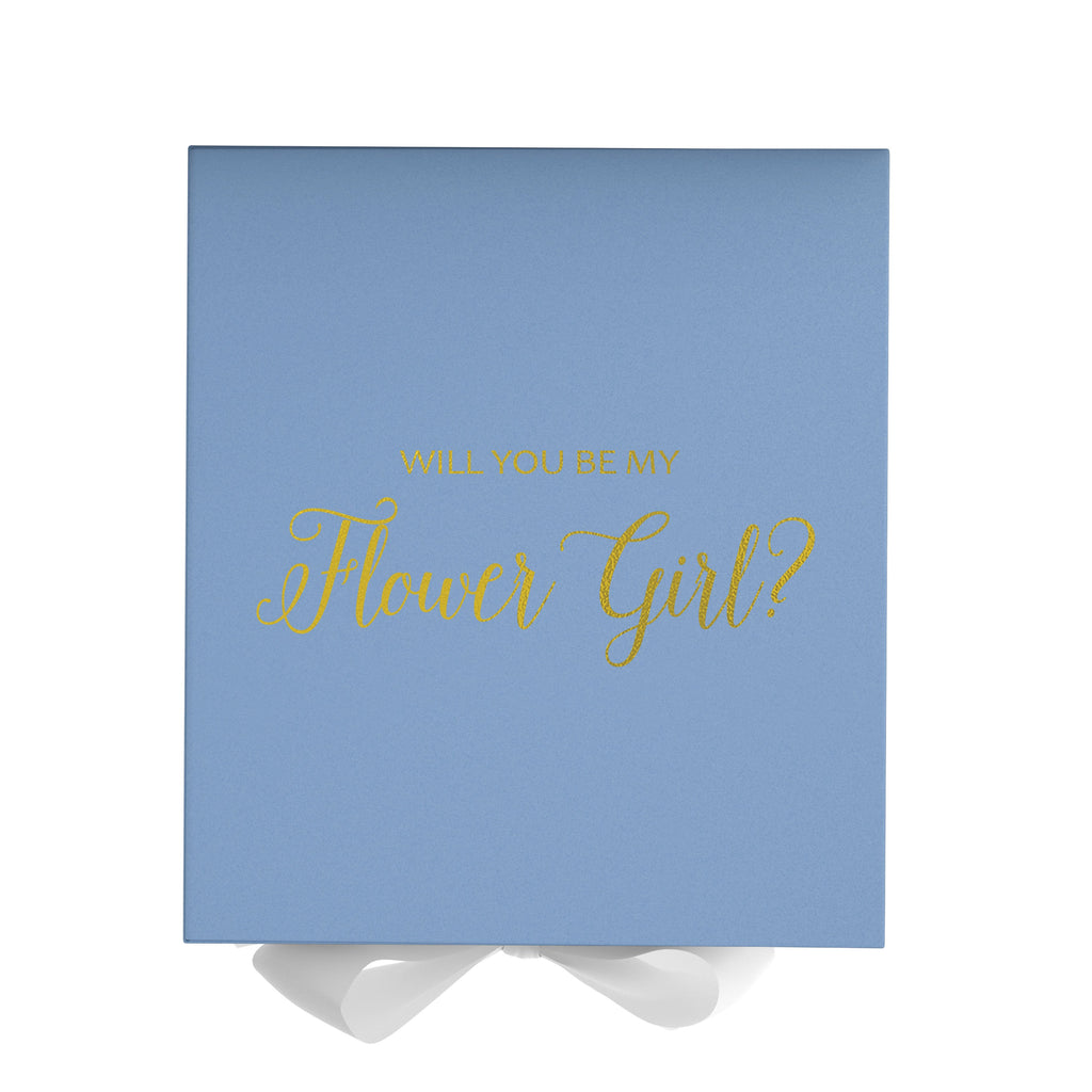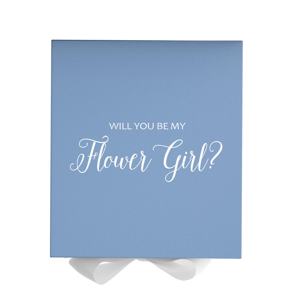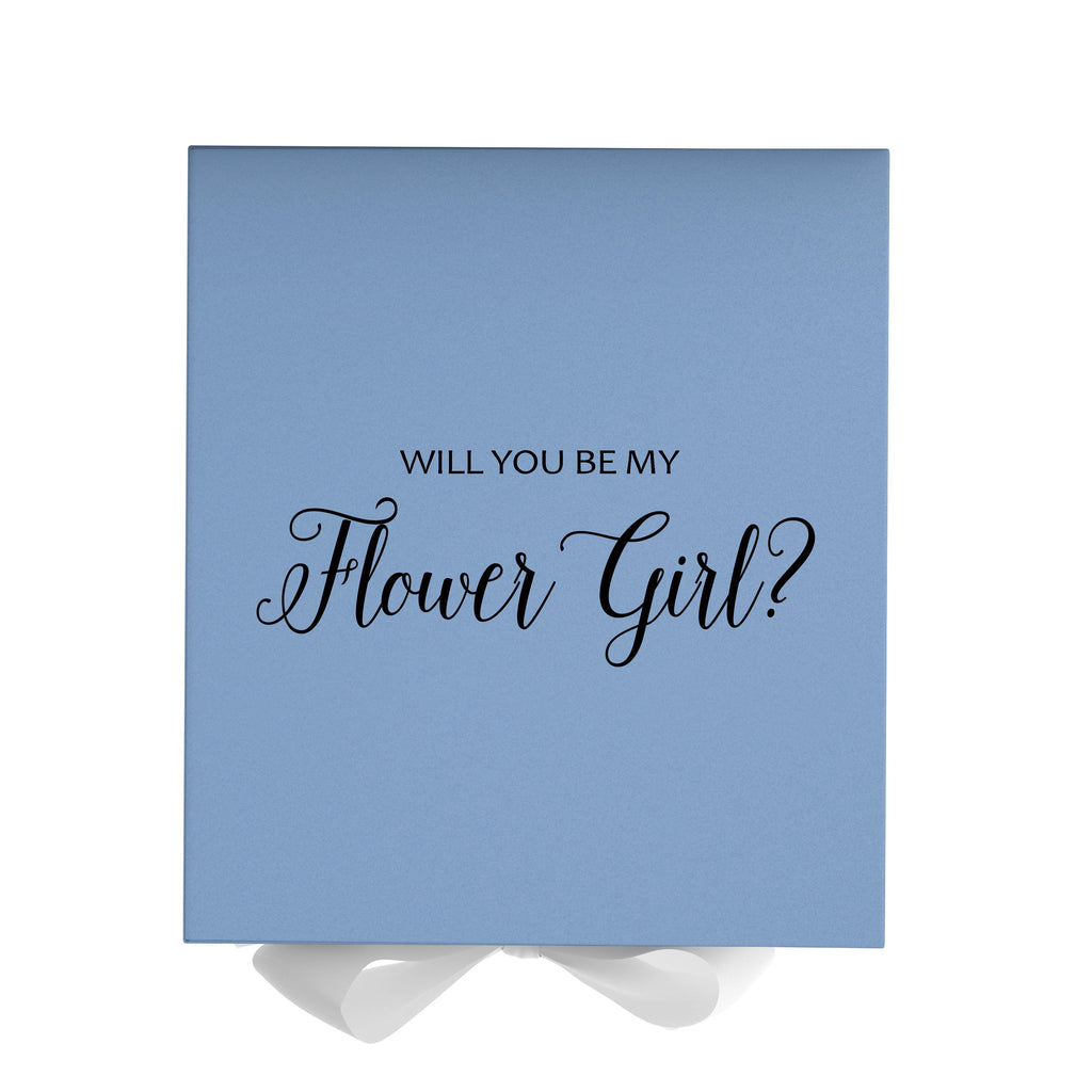 Will You Be My Flower Girl? Proposal Box Light Blue w/ white Bow- No Border