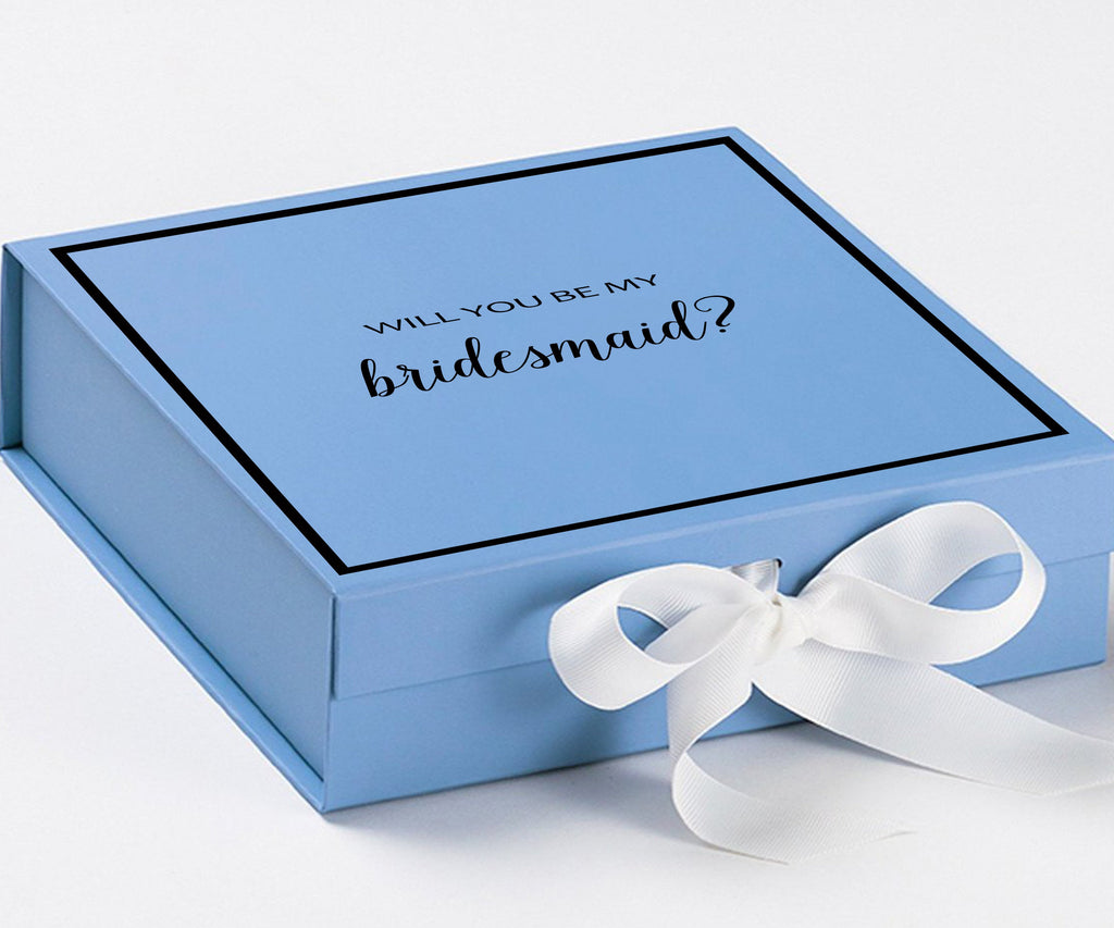 Will You Be My bridesmaid? Proposal Box Light Blue w/ white Bow- Border