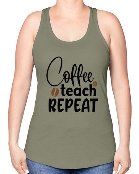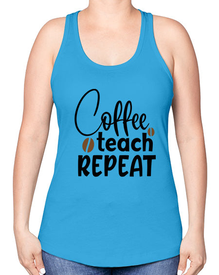 coffee teach repeat Style 106#- teacher -Racerback Tank