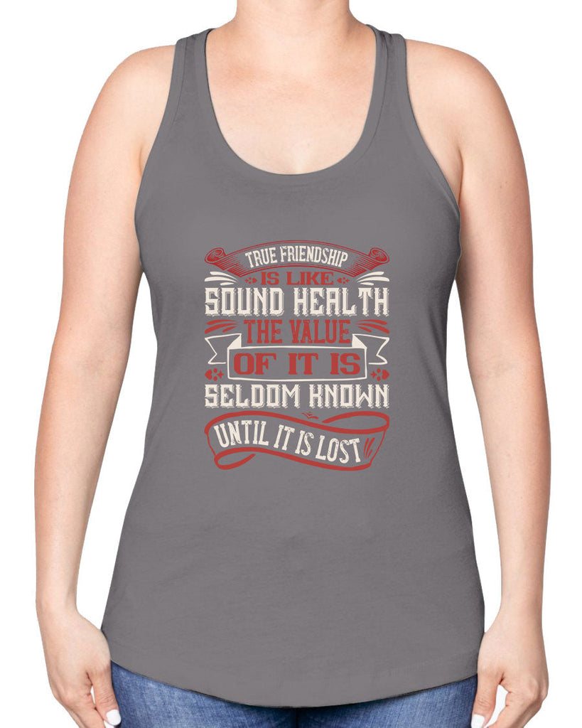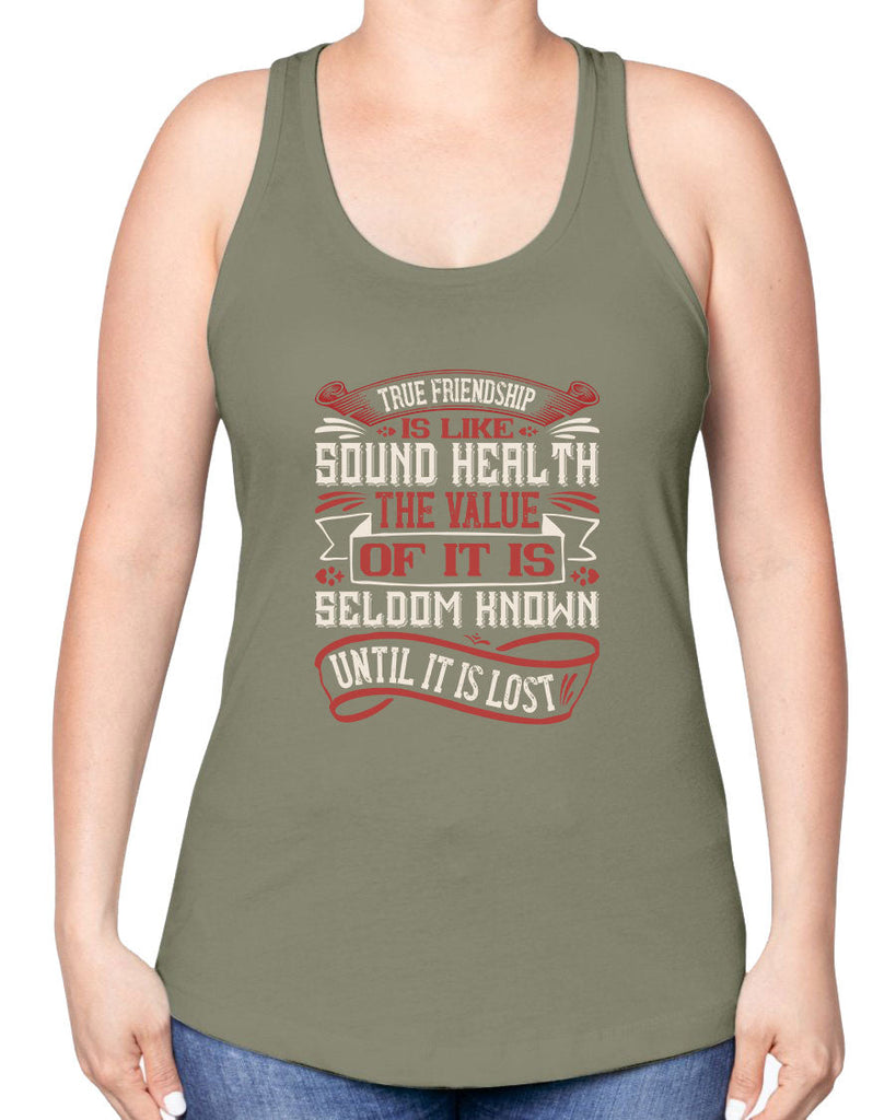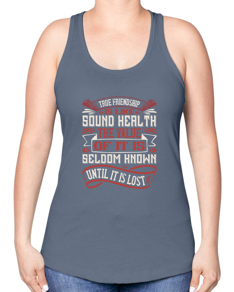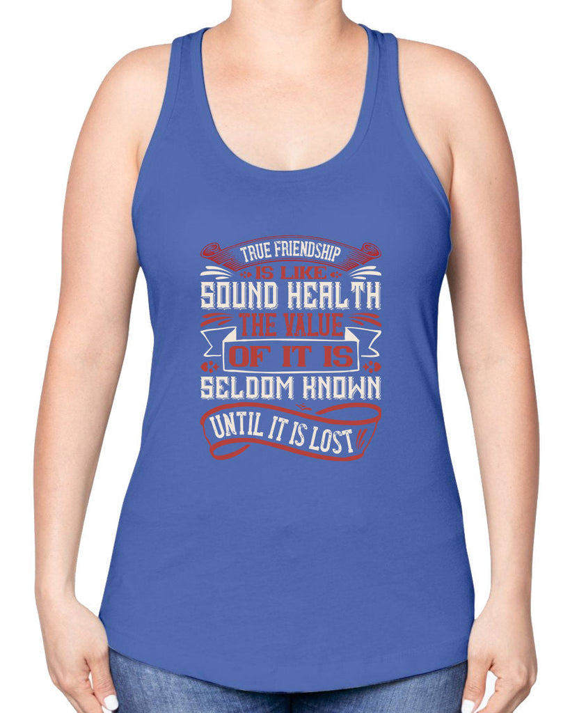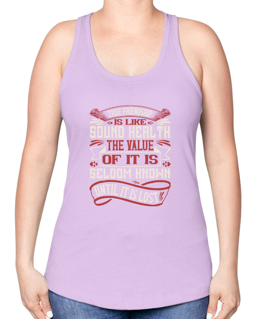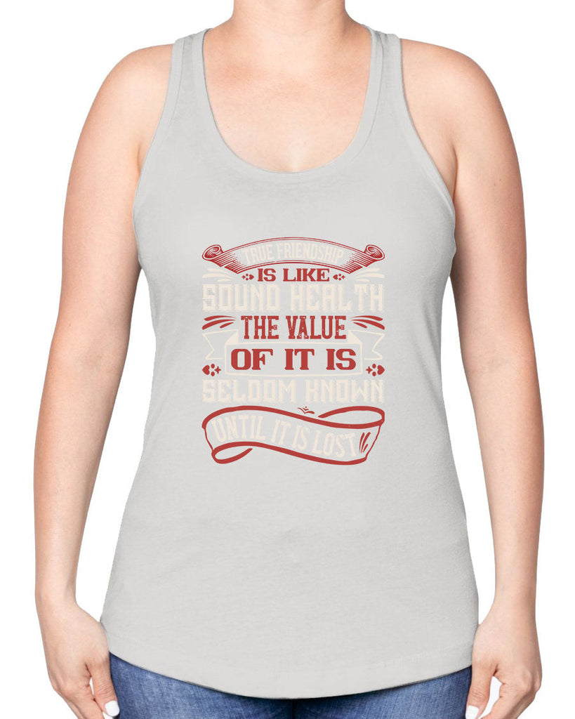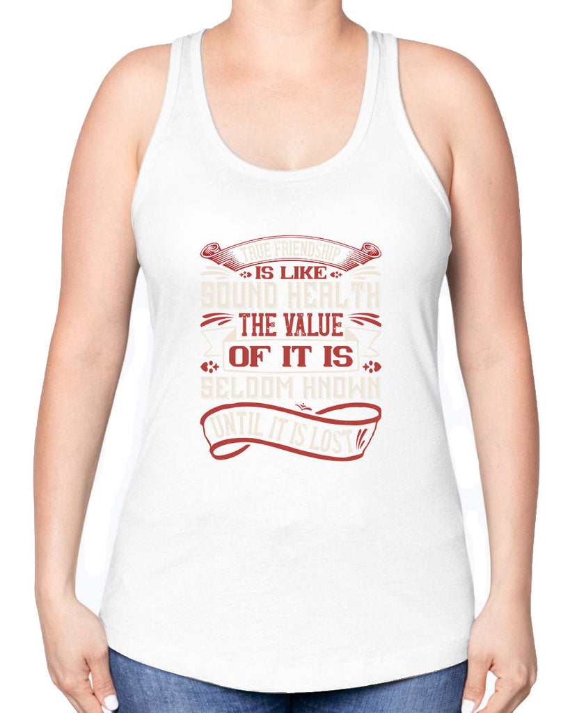 • True friendship is like sound health the value of it is seldom known until it is lost- bestfriend -Racerback Tank