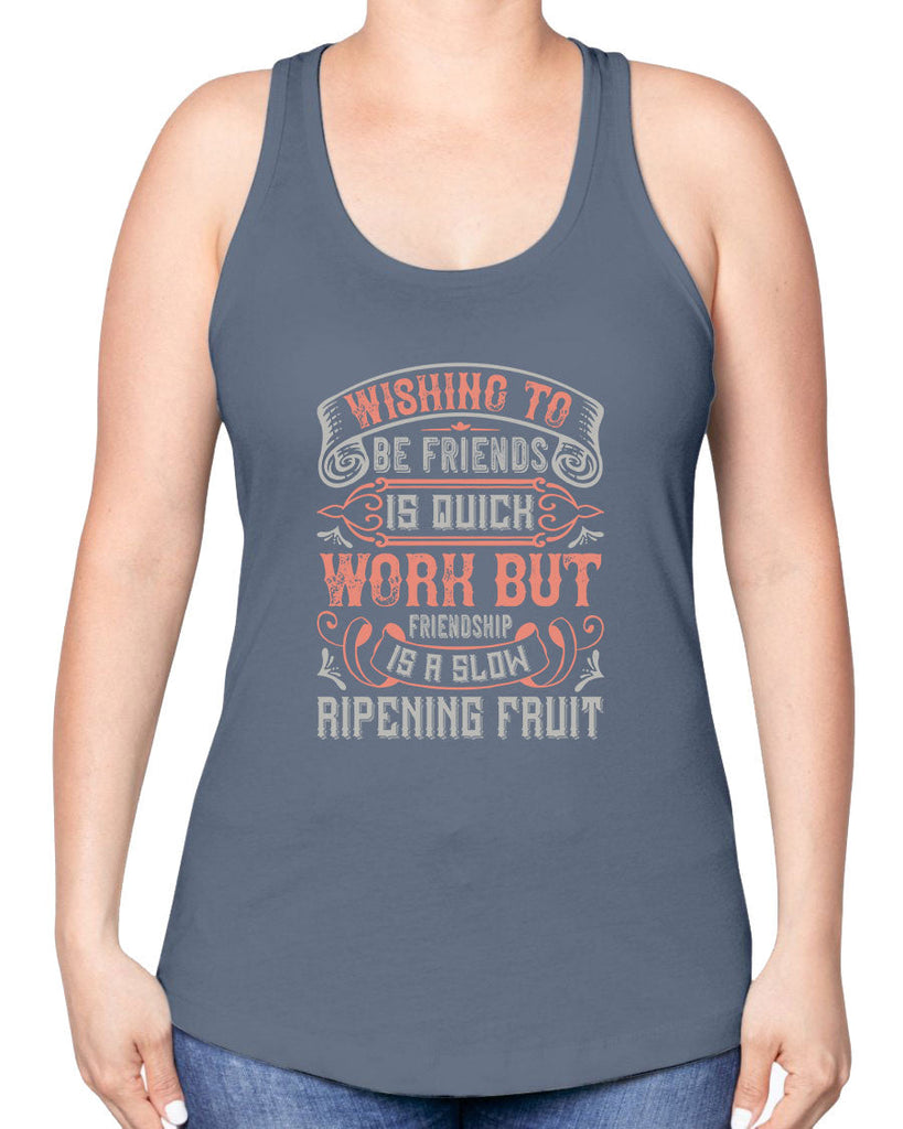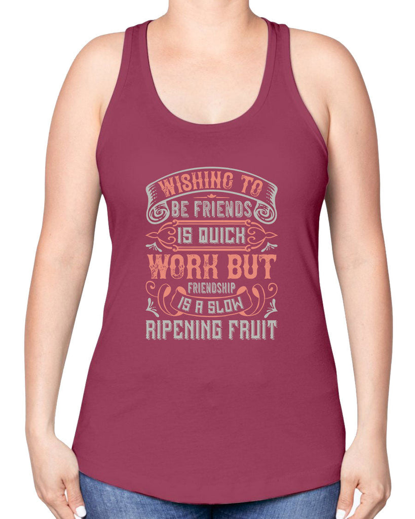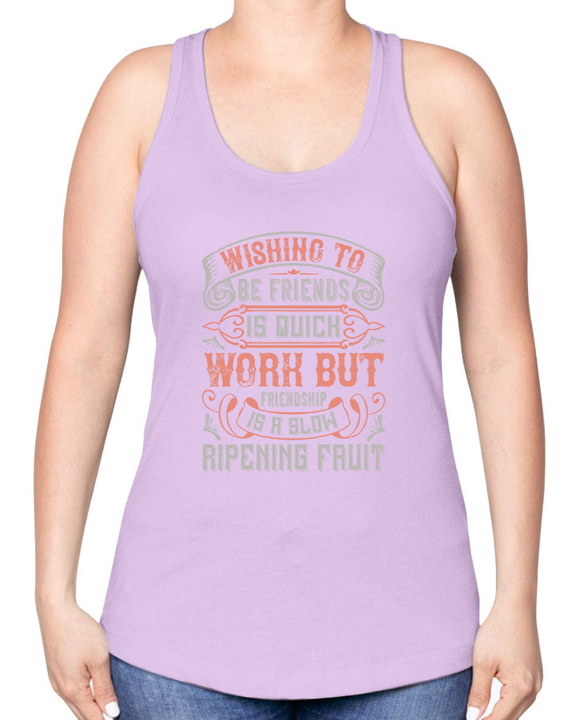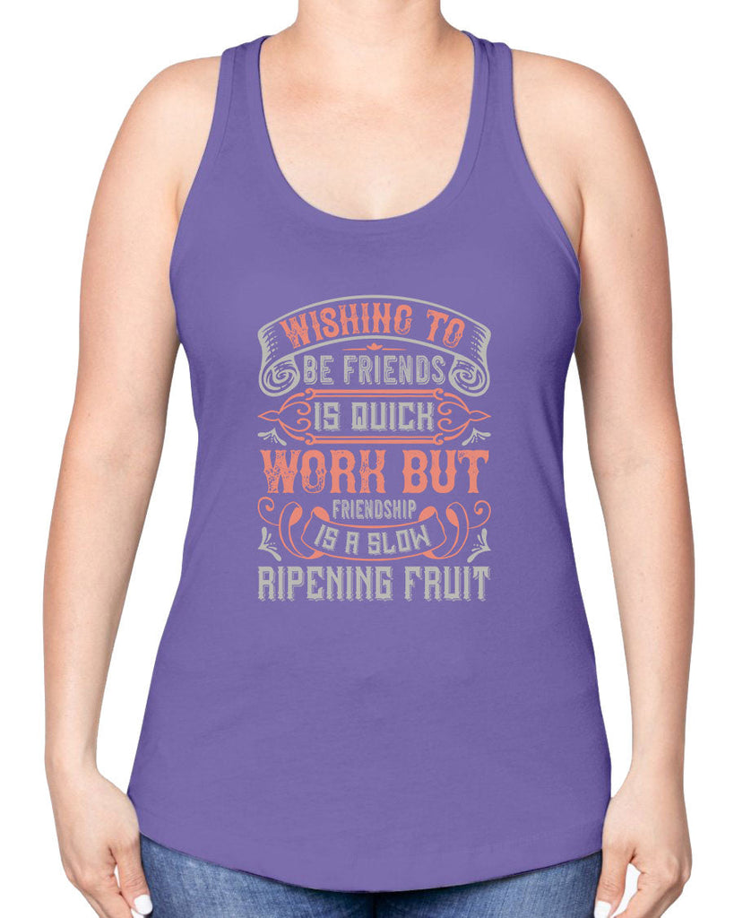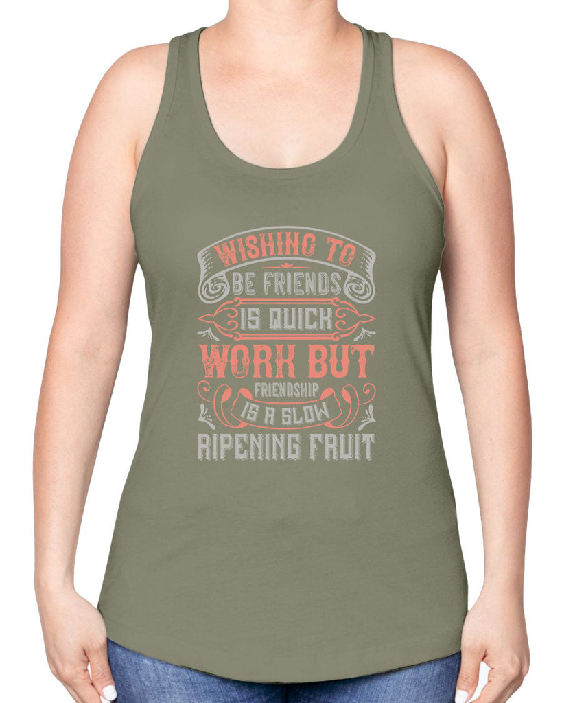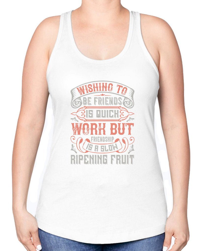Wishing to be friends is quick work, but friendship is a slow ripening fruit - bestfriend -Racerback Tank