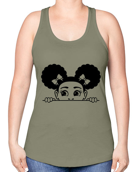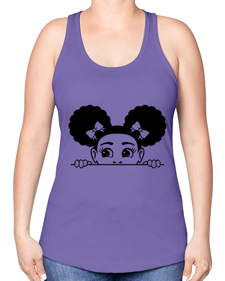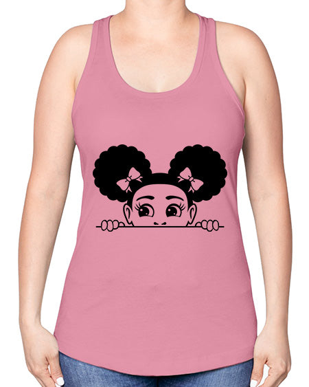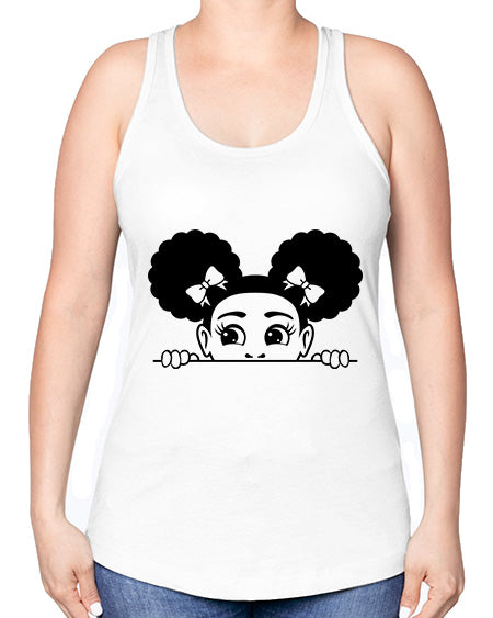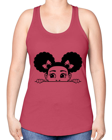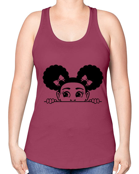 afro puffs girl peekaboo 80#- Sub -Racerback Tank