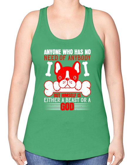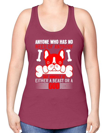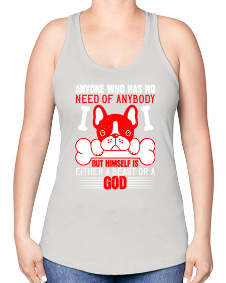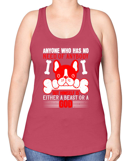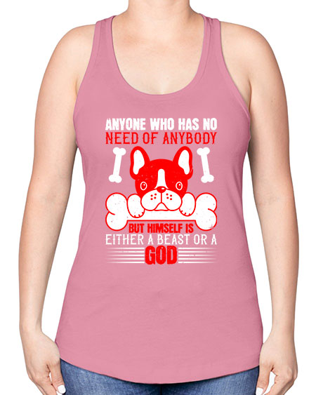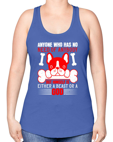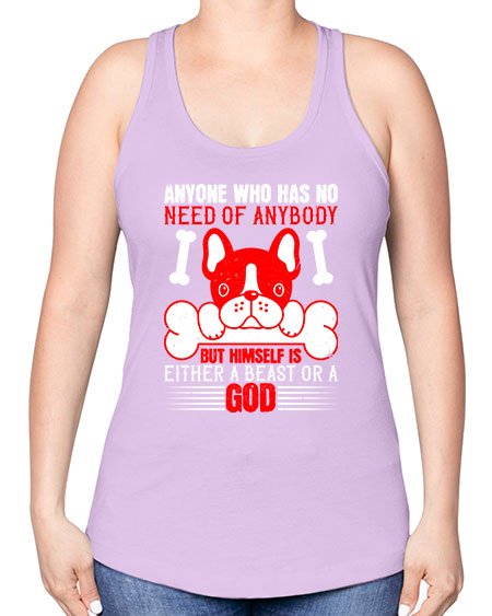 Anyone who has no need of anybody but himself is either a beast or a God Style 132#- dogs -Racerback Tank