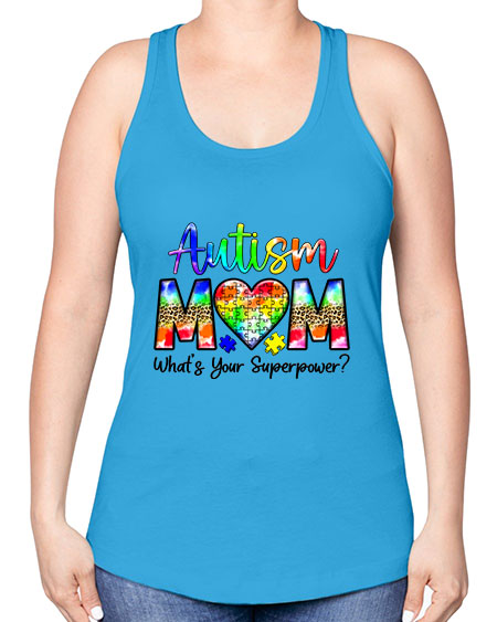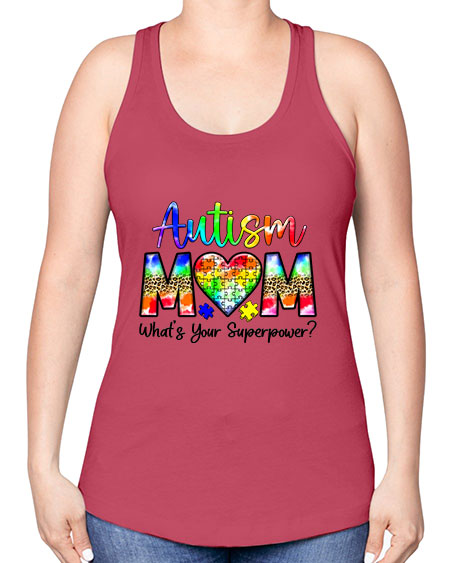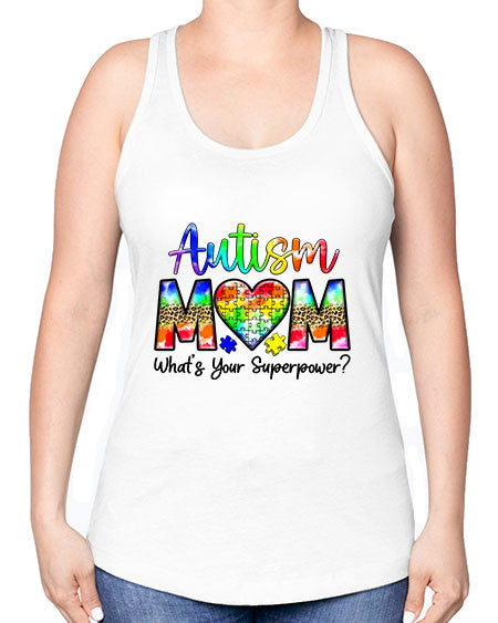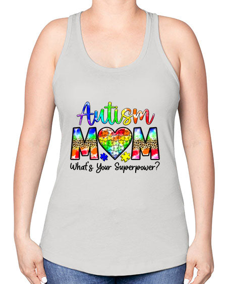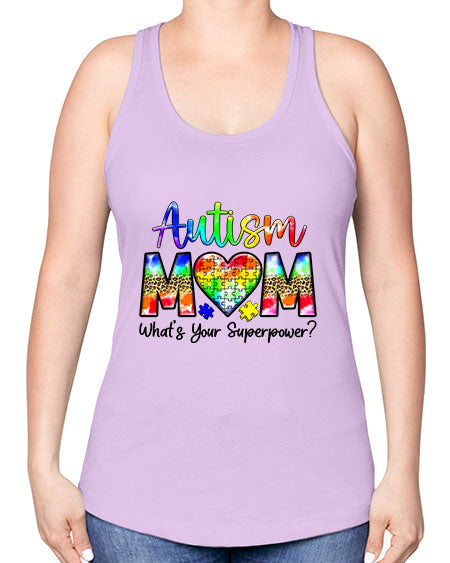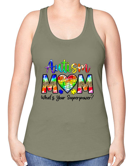 Autism Mom whats your superpower- Sub -Racerback Tank