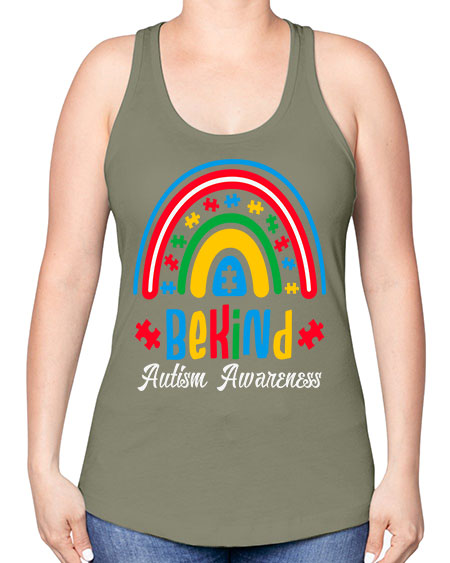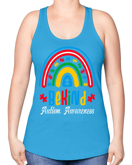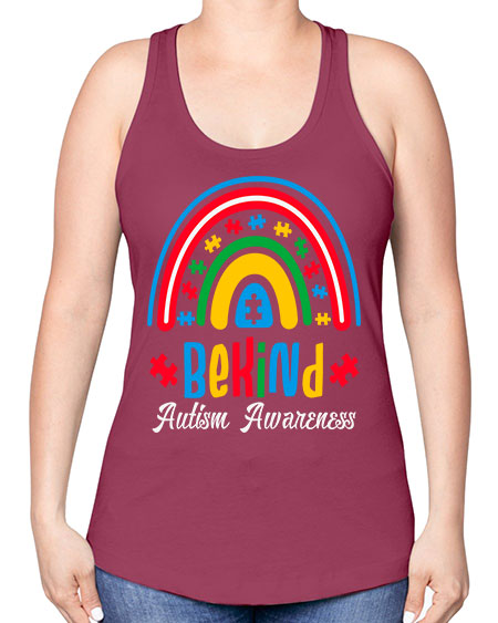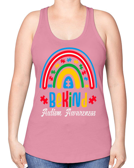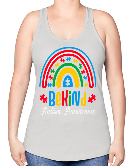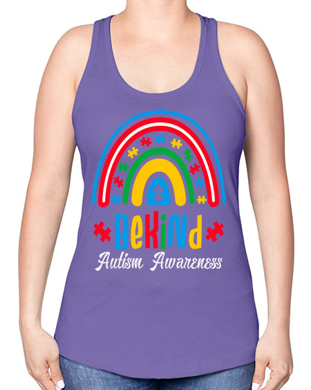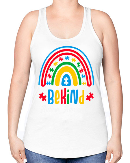 google-site-verification=jVrHOkW2AsgL_ozwUikqFQE6-Ke6U43Z8aLcUbXT5TE be kind autism awareness rainbow 67# - autism -Racerback Tank – Tshirt Unlimited