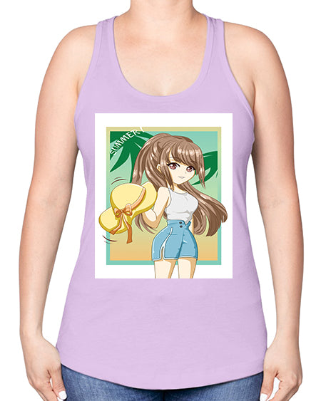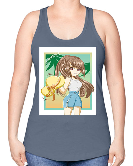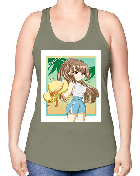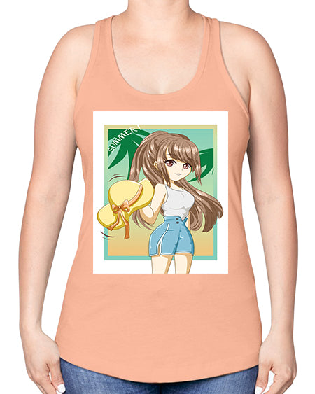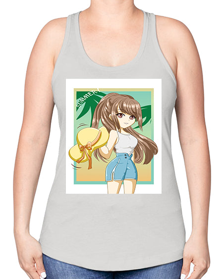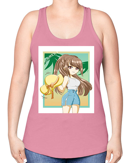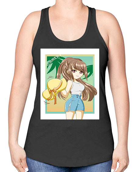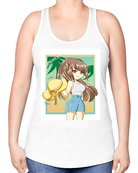 Beautiful and cute girl with hat on the beach in the summer 154# - anime -Racerback Tank