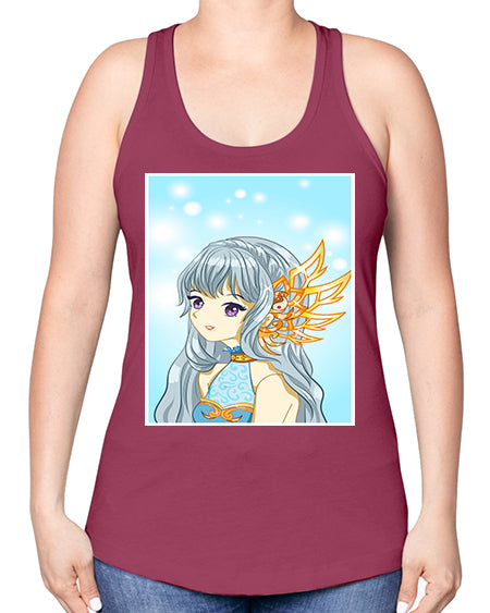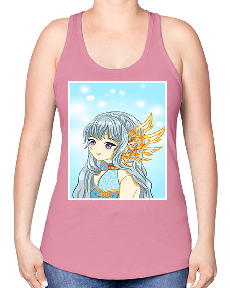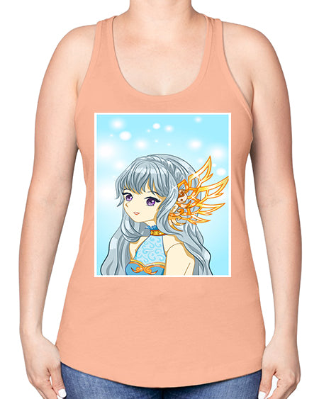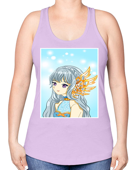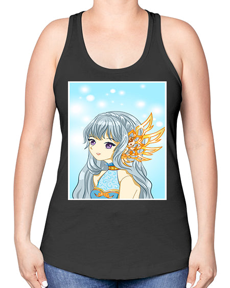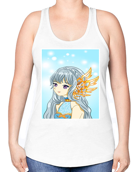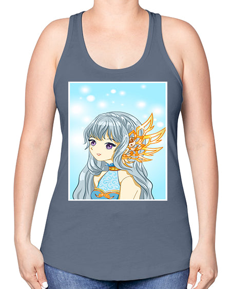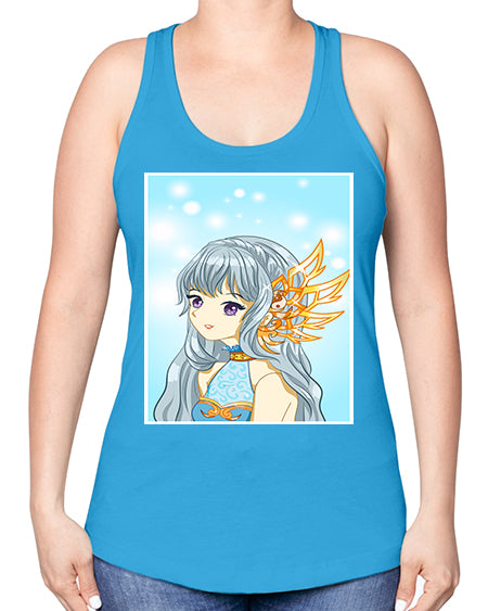 Beautiful and cute queen long blue hair with gold crown 27# - anime -Racerback Tank