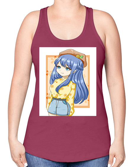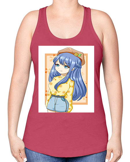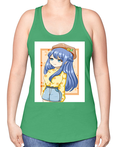 Beautiful and soft girl blue hair in summer 153# - anime -Racerback Tank