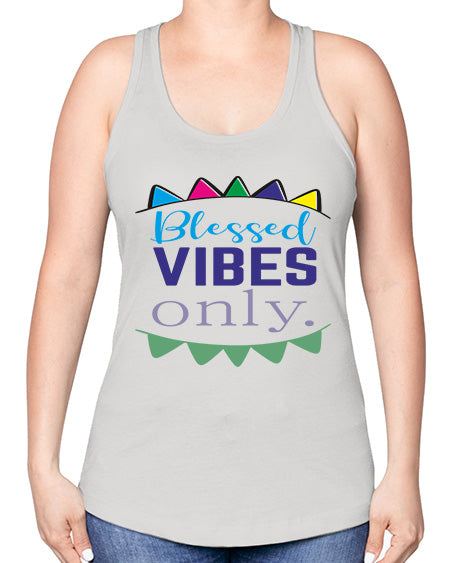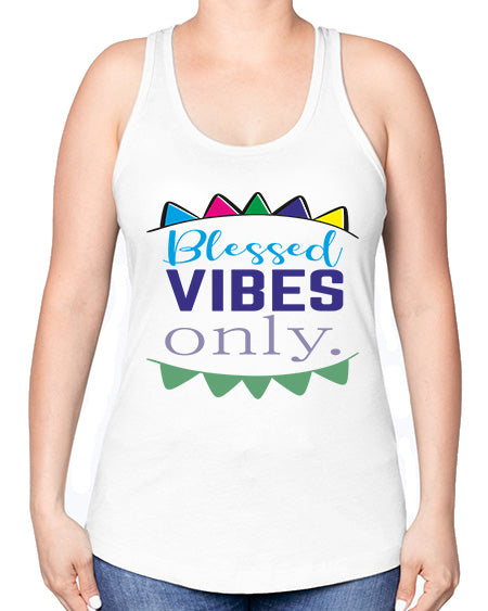 google-site-verification=jVrHOkW2AsgL_ozwUikqFQE6-Ke6U43Z8aLcUbXT5TE blessd vibes only - black words and phrases -Racerback Tank – Tshirt Unlimited