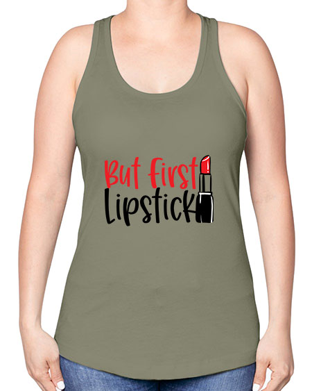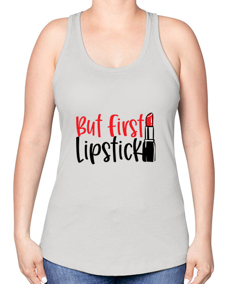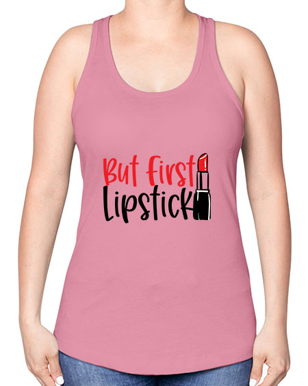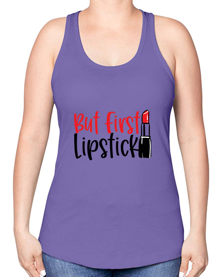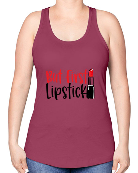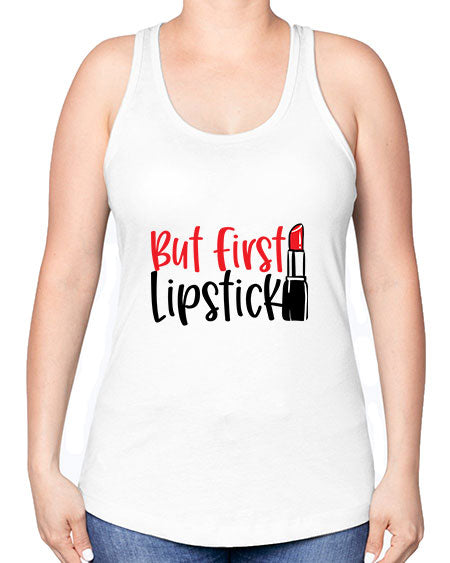 google-site-verification=jVrHOkW2AsgL_ozwUikqFQE6-Ke6U43Z8aLcUbXT5TE But First Lipstick Style 246# - beauty - fashion -Racerback Tank – Tshirt Unlimited