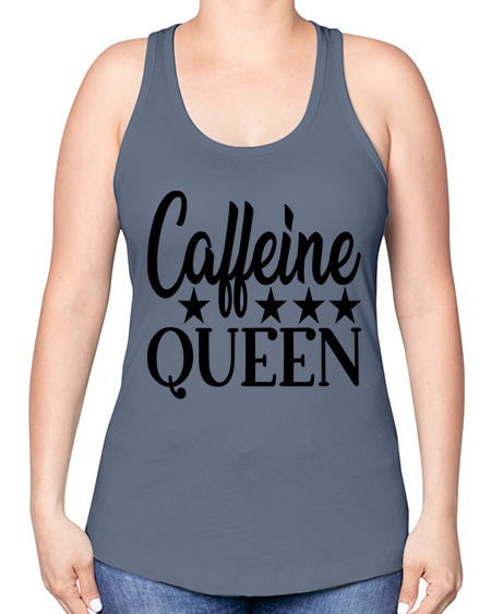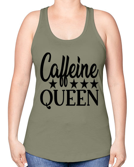 Caffeine Queen 4# - black words and phrases -Racerback Tank