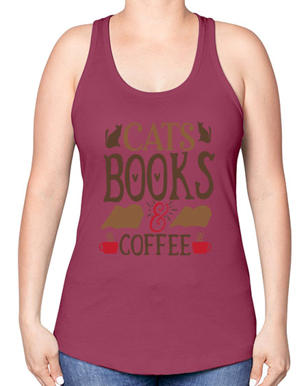 google-site-verification=jVrHOkW2AsgL_ozwUikqFQE6-Ke6U43Z8aLcUbXT5TE Cats Books Coffee Style 9# - cats -Racerback Tank – Tshirt Unlimited