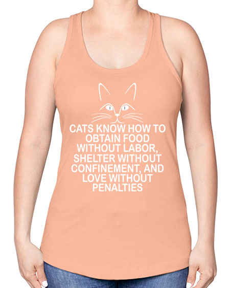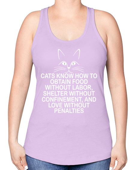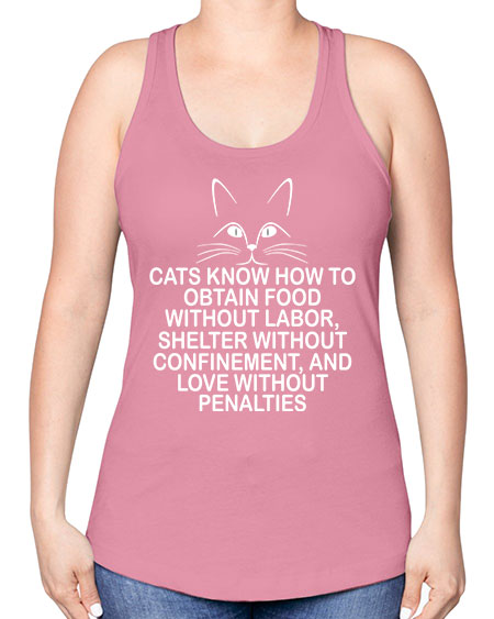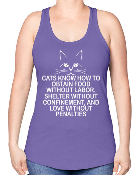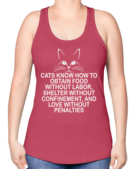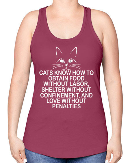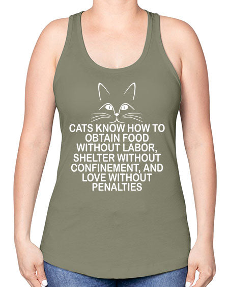 cats know how to obtain food without labor- cats -Racerback Tank
