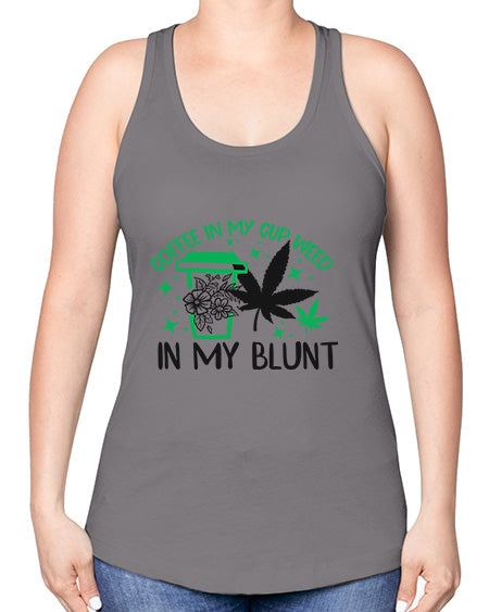 Coffee In my Cup Weed in my Blunt 336#- graphic -Racerback Tank